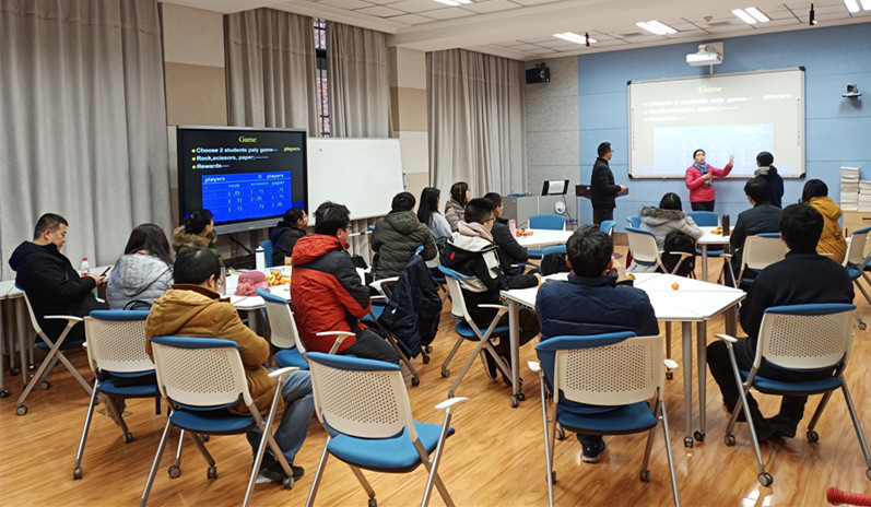 副团长电子信息学院马云红老师代表研修团,总体介绍了阿德莱德大学境外研修项目、研修课程总体安排等方面内容。随后以“Game Theory”为题,为现场教师带来教学示范。马云红老师通过展示教学设计、教学互动技巧、教学工具使用等,并将现场观摩的教师和学生们组成不同讨论小组,针对具体的教学设计及问题参与研讨,让参加交流的各位老师充分体验英文媒介教学方法的实践运用效果,掌握双语教学的策略要领。
