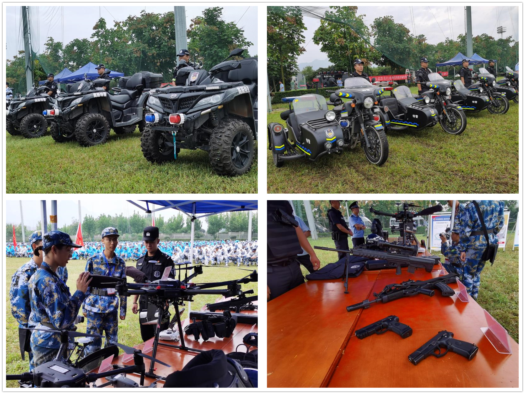 活动现场,扫黑办、巡警大队还向学生展示了执行任务时专用的警务装备。防暴服、防暴头盔、防爆盾、制式枪械、无人机、全地形警用摩托车等装备一应俱全。这些在生活中从未接触到的东西令在场的师生们耳目一新,新的信息技术与材料应用到警务装备上也加深了理工学生们对理工科专业的感性认识,让他们对自己所学专业的应用有了更加深刻的理解,并大大增强了新生的祖国荣誉感。