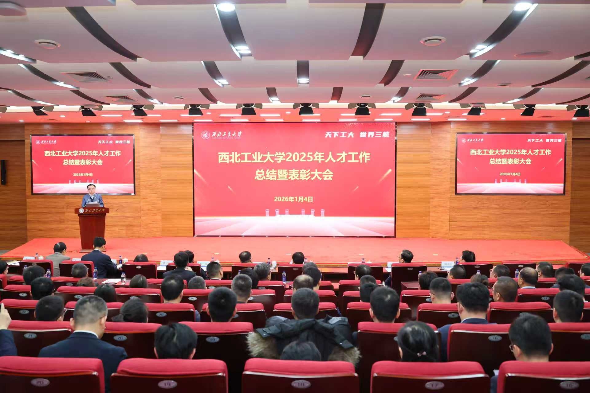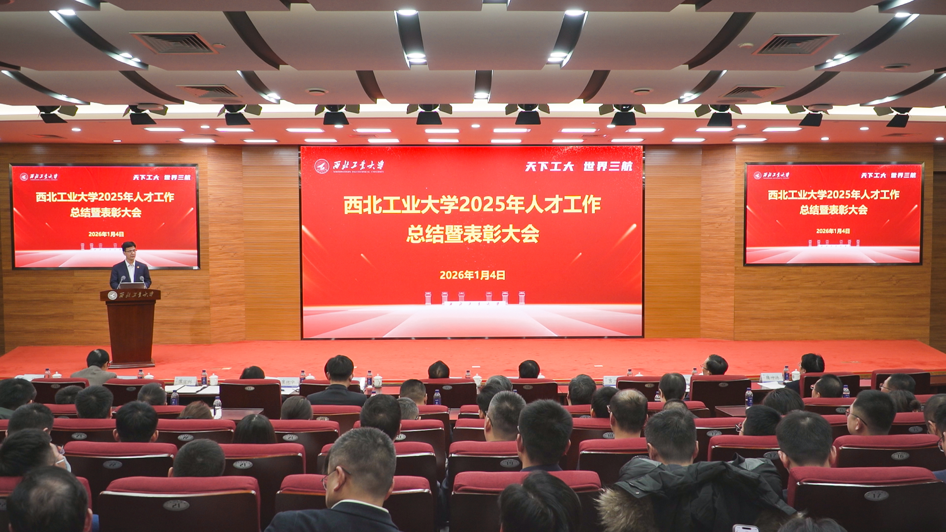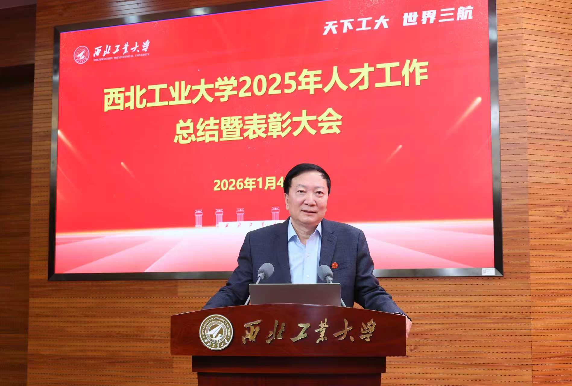 1月4日下午,西北工业大学2025年人才工作总结暨表彰会在友谊校区举行。党委书记李言荣出席并颁奖、讲话。校长宋保维出席并颁奖。校学术委员会主任黄维院士,校务委员会副主任张卫红院士,副校长张艳宁院士,中国科学院院士杨坤德,副校长张富利参加。会议由党委常务副书记吕卫东主持。