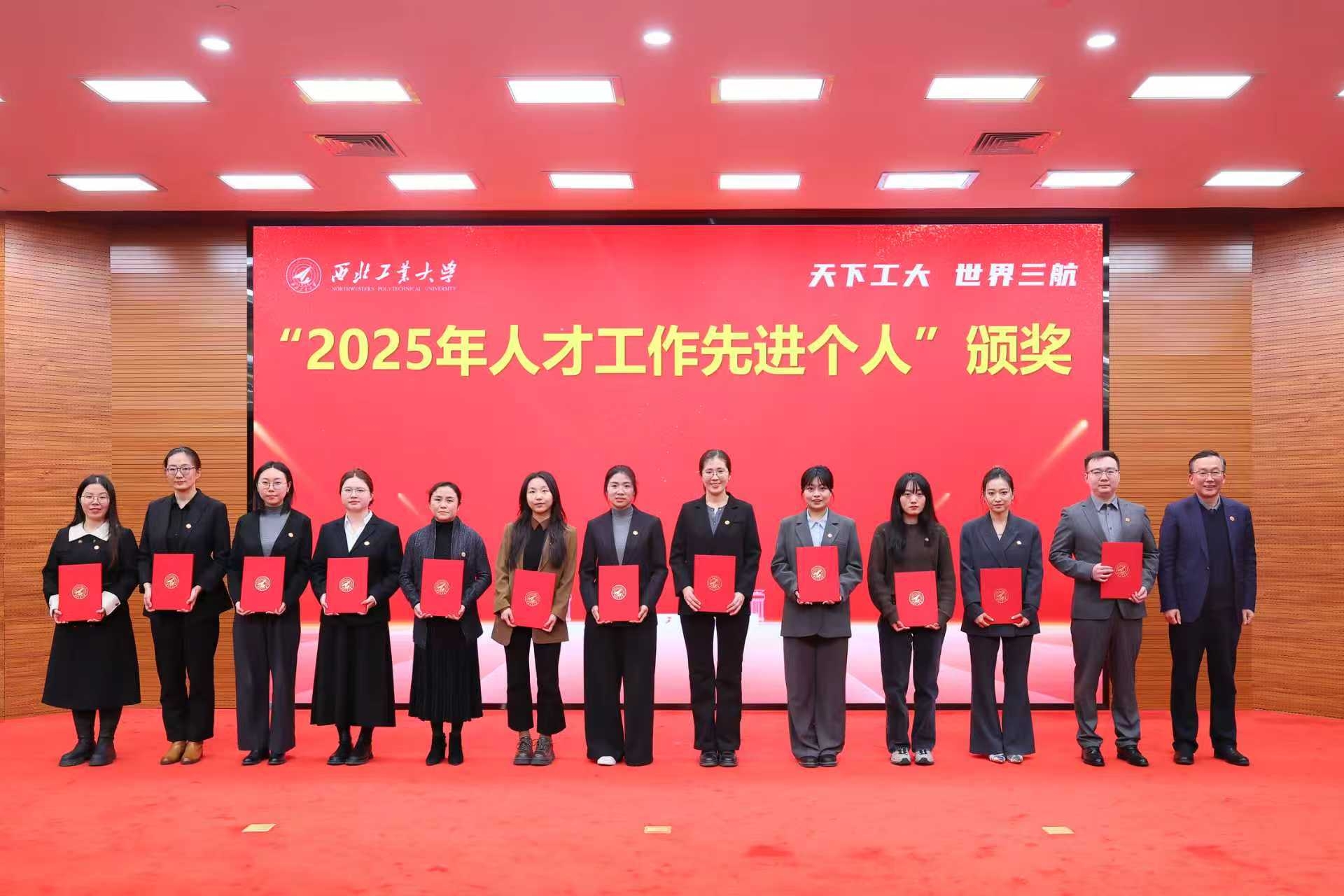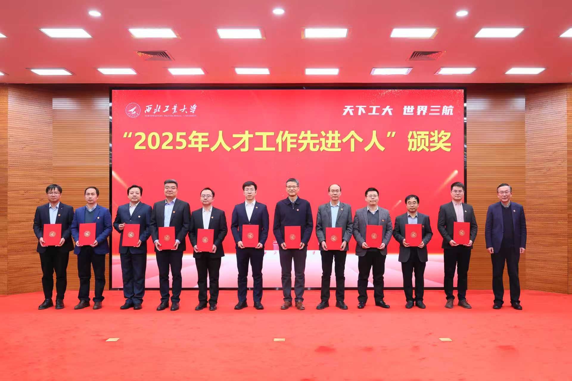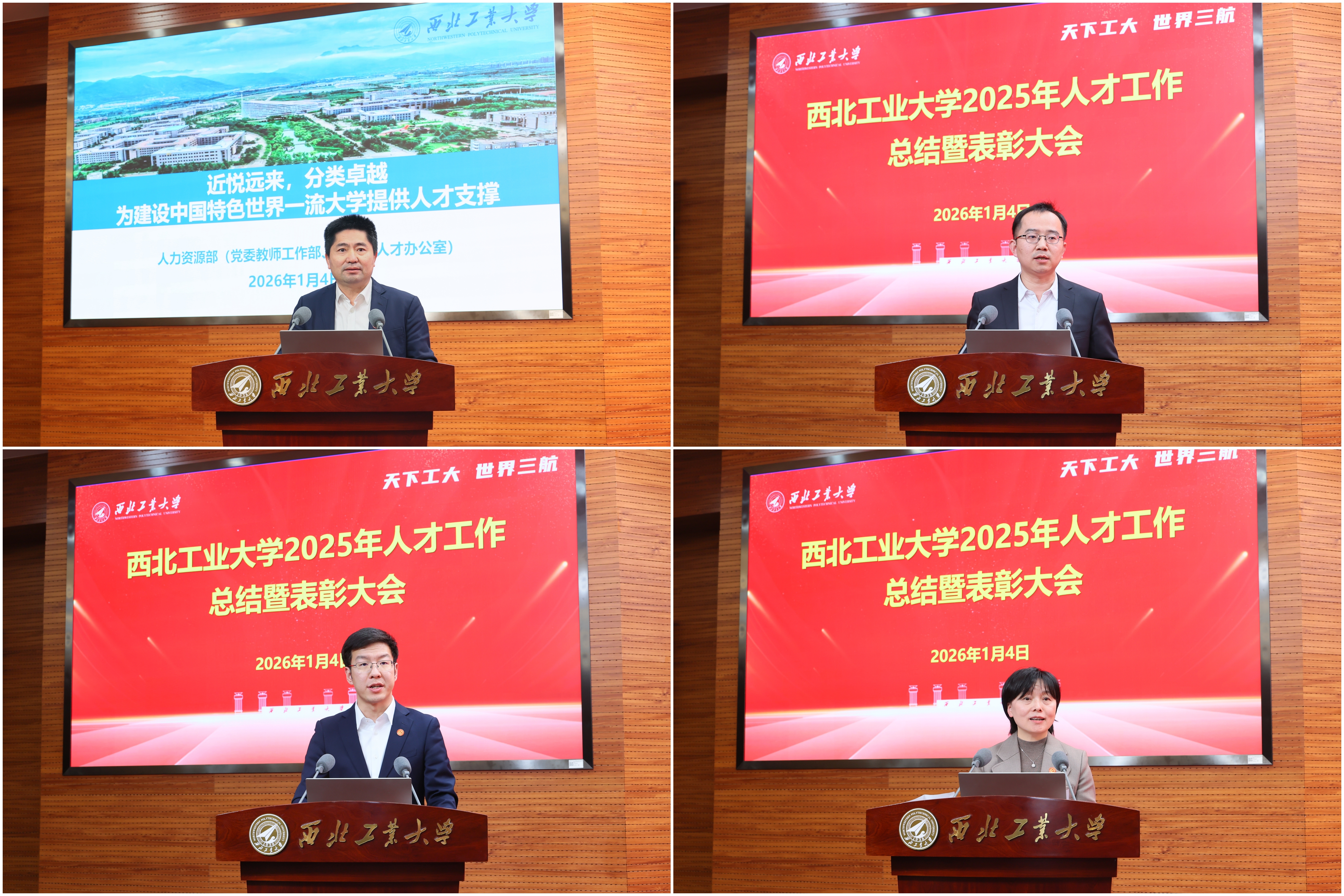 1月4日下午,西北工业大学2025年人才工作总结暨表彰会在友谊校区举行。党委书记李言荣出席并颁奖、讲话。校长宋保维出席并颁奖。校学术委员会主任黄维院士,校务委员会副主任张卫红院士,副校长张艳宁院士,中国科学院院士杨坤德,副校长张富利参加。会议由党委常务副书记吕卫东主持。