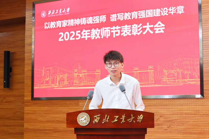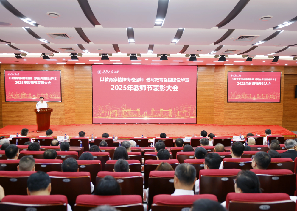 9月10日,西北工业大学2025年教师节表彰大会在友谊校区国际会议中心举行。校党委书记李言荣出席并讲话,全体在校校领导,校学术委员会主任黄维院士,各单位主要负责人,获奖教师代表、荣休教师代表、新入职教师代表和学生代表等参加大会。大会由党委常务副书记吕卫东主持。
