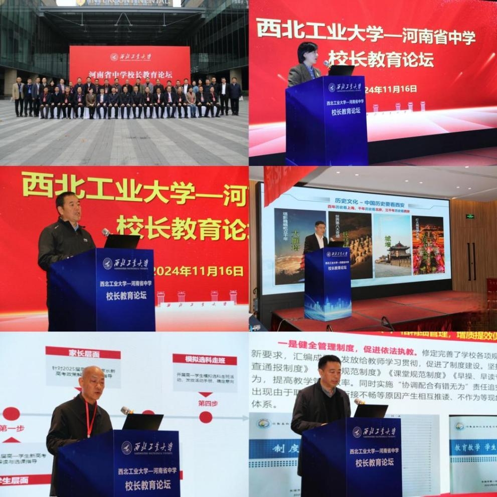 举办西北工业大学第四届“百所中学校长论坛”“四川遂宁重点中学‘总师型’人才协同培养会议”“河南省中学校长教育论坛”等高水平教育研讨活动。宋保维、程基伟、杨益新、张开富、陈建有等领导出席会议,与相关省份考试院领导、各地校友代表以及重点生源中学领导齐聚一堂,深入研讨大学中学衔接教育,助力提高拔尖创新人才自主培养质量,更好践行为党育人、为国育才的初心使命。