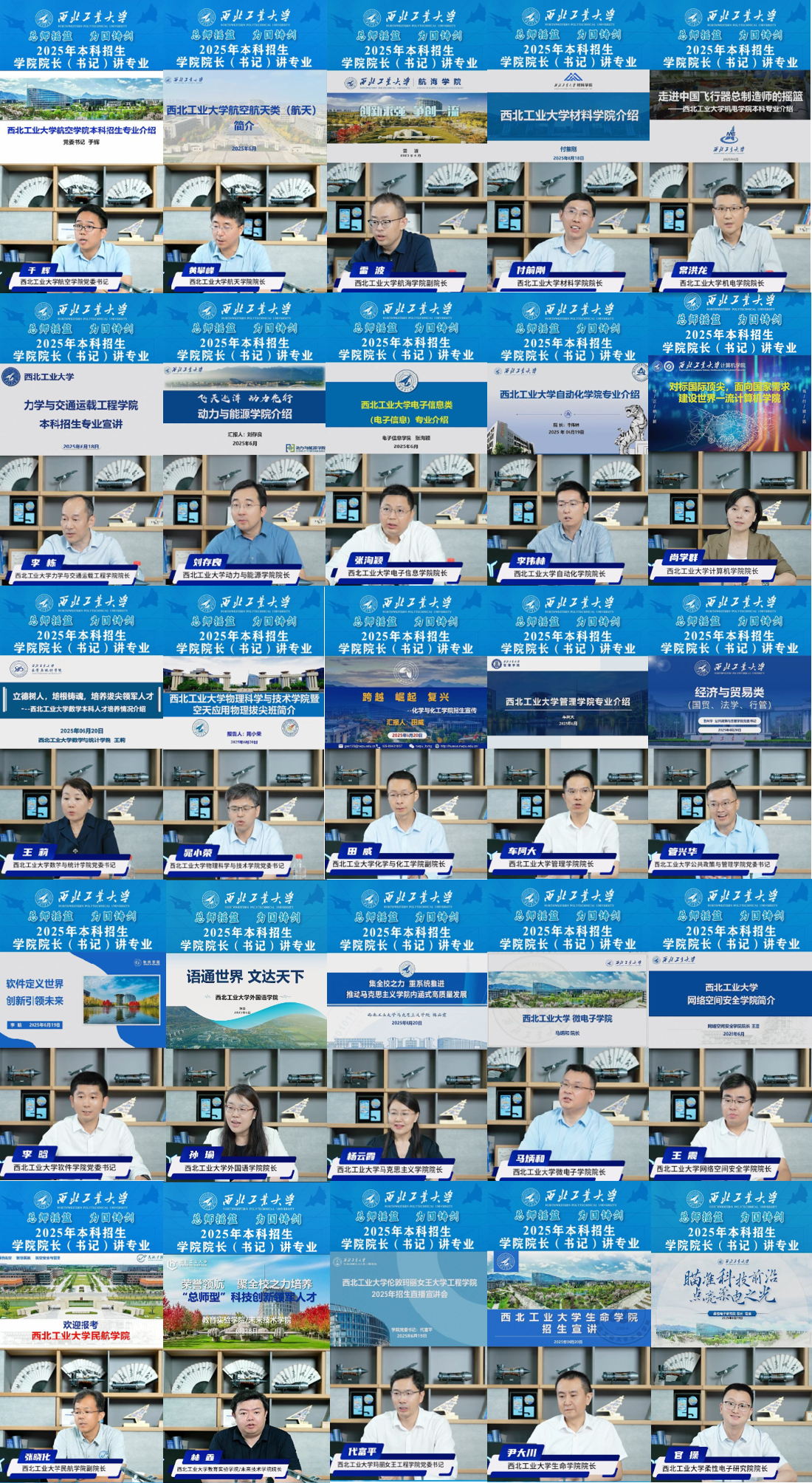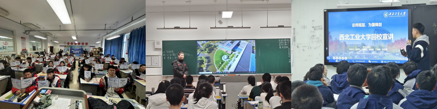 2025年,全体校领导深度参与招生宣传工作。中国工程院院士、校党委书记李言荣参加中央广播电视总台社教节目《我的大学》之《西北工业大学》,积极为学校做招生宣传,向广大考生推介西工大。中国工程院院士、校长宋保维参加中央广播电视总台社教节目《2025校长有话说》,在高考结束后向考生推介西工大,并在志愿填报期间赴湖南多地中学走访,鼓励优秀学子报考西工大。