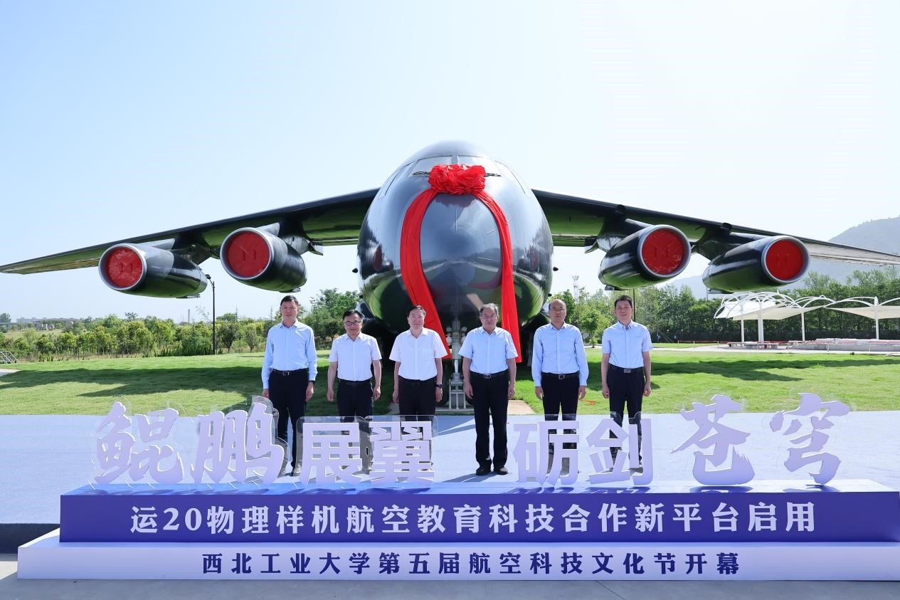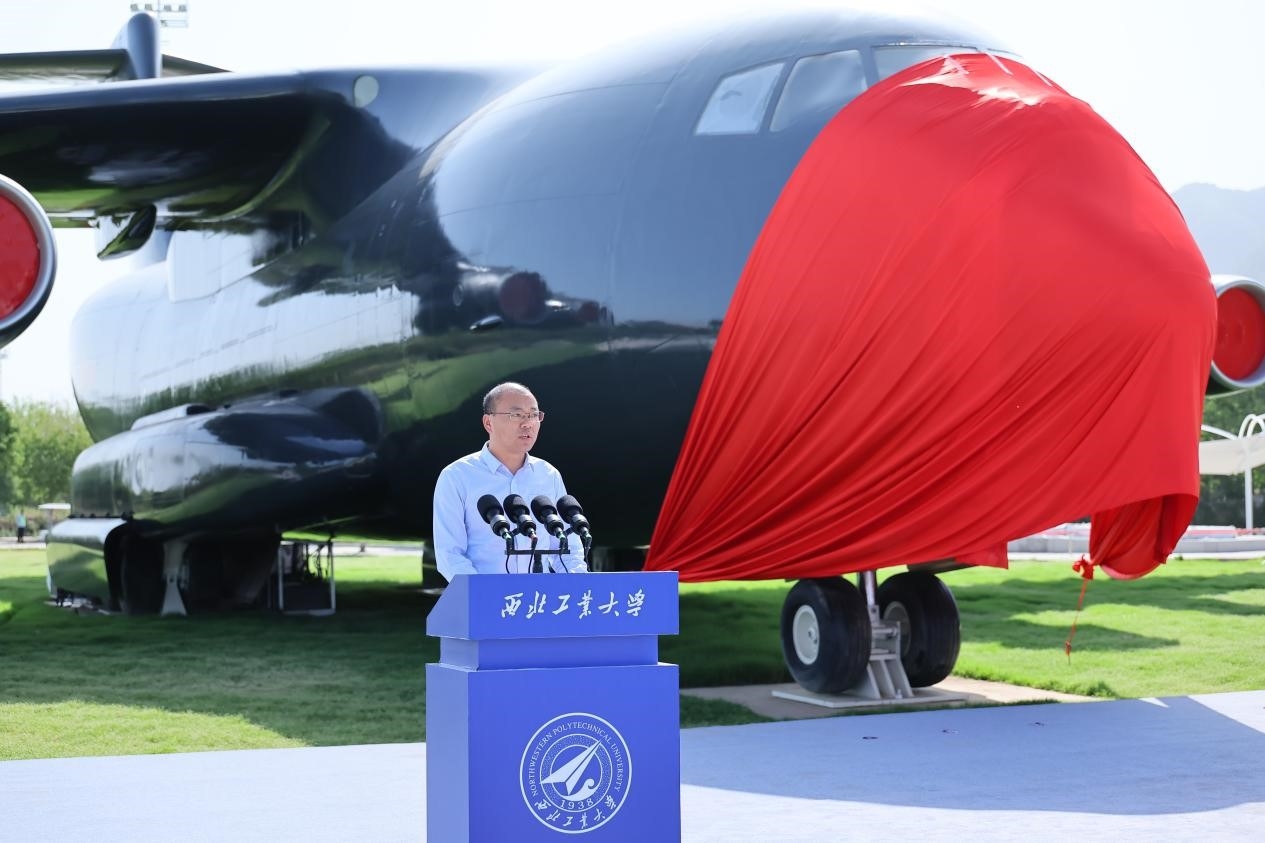 耿延升代表一飞院向大家的支持关心表示感谢。他说,多年来,西工大与一飞院坚持校企合作、协同创新、共同发展,取得了一系列产学研深度融合的成果。西工大为一飞院的重大项目研制和高质量发展提供了重要的智力支撑,一飞院也为西工大师生施展才华和科研成果开花结果提供了重要的舞台。运-20物理样机走进西工大校园,是深化产学研合作的又一次重要实践。它将成为西工大学子的“移动课堂”,也为院校双方提供了科研与技术研究的实践平台,可以基于此开展一系列深入的技术交流与研究。运-20物理样机走进校园、进入大众视野,开展广泛的航空科普及文化宣传,让更多的人、特别是青年学生了解运-20的研制历程、技术特点、研制背后的故事,让每一位接触到它的人都能感受到我国航空事业蓬勃发展的累累硕果,厚植家国情怀,增强事业自信和民族自信。他表示,以运-20物理样机启用为新的起点,双方会在科技创新、型号研制和人才培养中结出更加丰硕的成果,也必将为航空强国的事业作出应有的更大贡献。