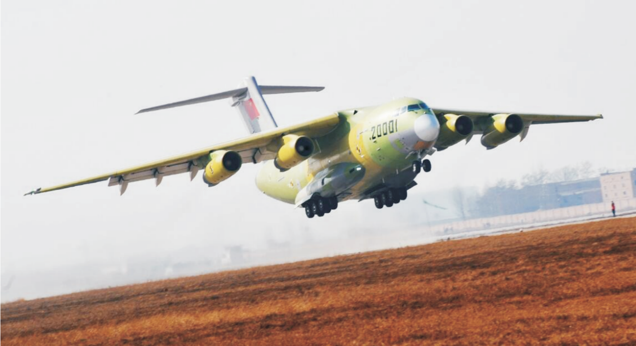 运-20是我国自主研制的首款大型多用途战略运输机,代号“鲲鹏”,由中国航空工业集团第一飞机设计研究院研制,2013年1月26日成功首飞。
