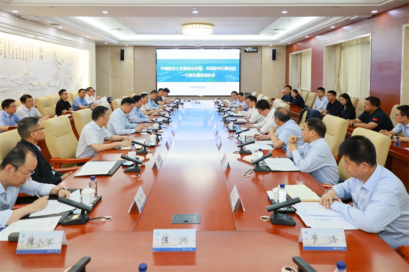 5月23日下午,中国航空工业集团总经理魏应彪一行来校调研。我校党委书记李言荣参加座谈交流。中国航空工业集团副总经理郭盛杰、纪检监察组组长陈波,中国工程院院士唐长红,副校长詹浩参加调研。座谈会由副校长张开富主持。