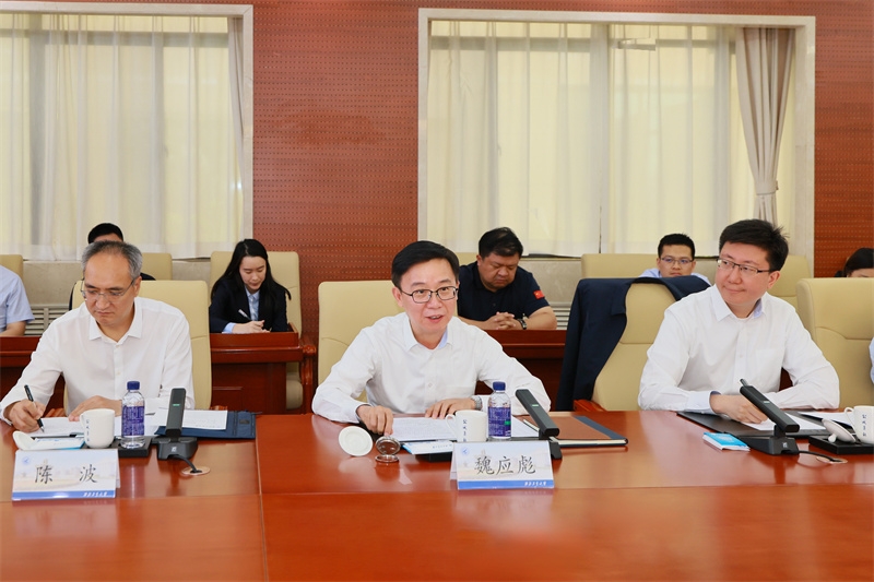 魏应彪向西北工业大学长期以来对中国航空工业集团给予的支持帮助表示感谢,并对学校近来的发展变化与所取得的成绩表示敬意。他介绍了集团近年来的发展情况,希望双方开展联合技术攻关,在加强重大型号任务合作、联合申请国家重大项目、强化重点平台建设、联合申报国家重大科技奖励等方面深化合作,共同为强国强军汇聚力量。