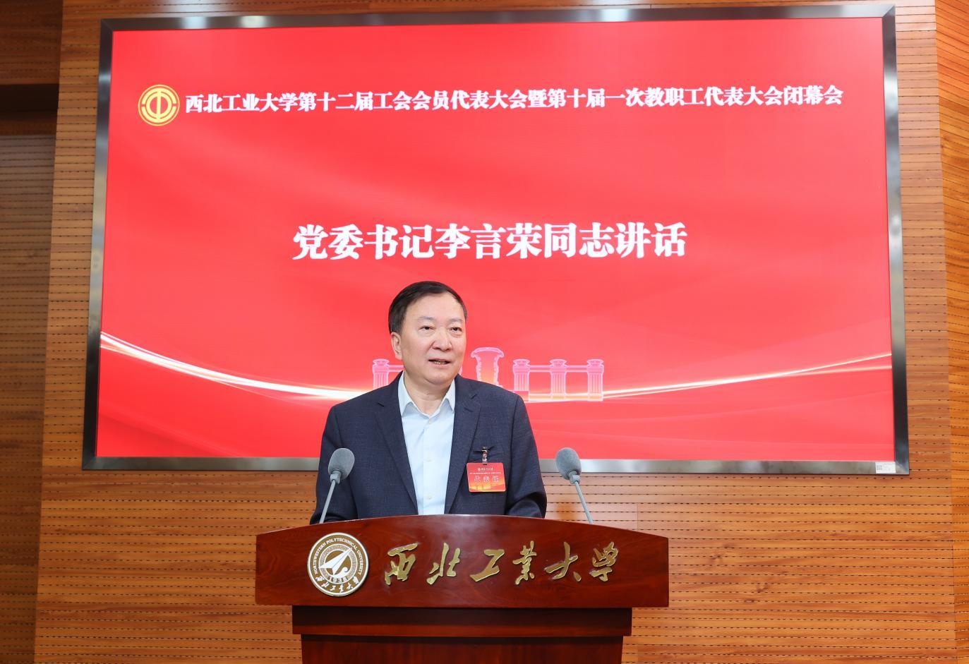 李言荣在总结讲话中代表学校党委对全体代表和大会筹备工作人员付出的辛勤努力表示衷心的感谢,对当选的新一届工会委员表示热烈的祝贺,对第十一届工会领导班子、各位委员和各级工会的同志们表示诚挚的感谢。他说,本次大会洋溢着求真务实、民主和谐、集思广益、奋发有为的气氛。各位代表本着对学校事业高度负责的态度,踊跃发言,建言献策,提出了很多建设性的意见和建议,表现出强烈的主人翁意识、大局意识和责任意识。第十一届工代会以来,各级工会坚持以习近平新时代中国特色社会主义思想为指导,不断增强政治性、先进性、群众性,持续深化改革创新,强化思想政治引领,团结奋斗、锐意进取,为学校事业高质量发展贡献了智慧和力量。李言荣就进一步做好教代会、工会工作提出了三点要求。一是要在坚持和加强党对工会的领导上作表率。要坚持不懈用习近平新时代中国特色社会主义思想凝心铸魂,牢牢把握工会工作正确政治方向;要贯彻落实好新时代党的教育方针,使党的领导覆盖办学治校各领域、贯穿教育教学各环节;要加强思想政治引领,用好延安等红色教育基地、大院大所等国防教育资源,团结引导广大教职工坚定不移听党话、跟党走。二是要在中国特色世界一流大学建设上立新功。要宣传好、解读好学校党委决策部署,引导教职工以主人翁的姿态,高质量完成“127”近期目标;要认真履职尽责,积极建言献策,聚焦教育强国建设的战略部署调查研究,特别是注意研究人工智能带来的人才培养模式变革、科研范式变革等,提出高质量、有价值、建设性的提案和意见建议;要团结引导教职工大力弘扬劳模精神、劳动精神、工匠精神,认真贯彻落实学校第十四次党代会精神,聚焦核心竞争力,扎实做好“总师型”人才培养、师资队伍建设、高水平科学研究、深化机构改革和评价改革、党建业务深融互促等工作。三是要在用心用力服务教职工上提质效。要牢固树立以教职工为中心的工作导向,切实实现好、维护好教职工合法权益;要发挥桥梁纽带作用,深入了解教职工思想状况、发展需求、生活情况,切实解决好师生急难愁盼,持续增强教职工的获得感幸福感;要持续抓实抓好“为师生办实事”活动,不断提升校园环境,提高服务保障能力,增强教职工的凝聚力向心力。李言荣最后说,我们要更加紧密地团结在以习近平同志为核心的党中央周围,永远在一线、永远在状态、永远在前列,为党育英才、为国铸重剑,加快建设“天下工大、世界三航”中国特色世界一流大学,为强国建设、民族复兴伟业作出新的更大贡献!
