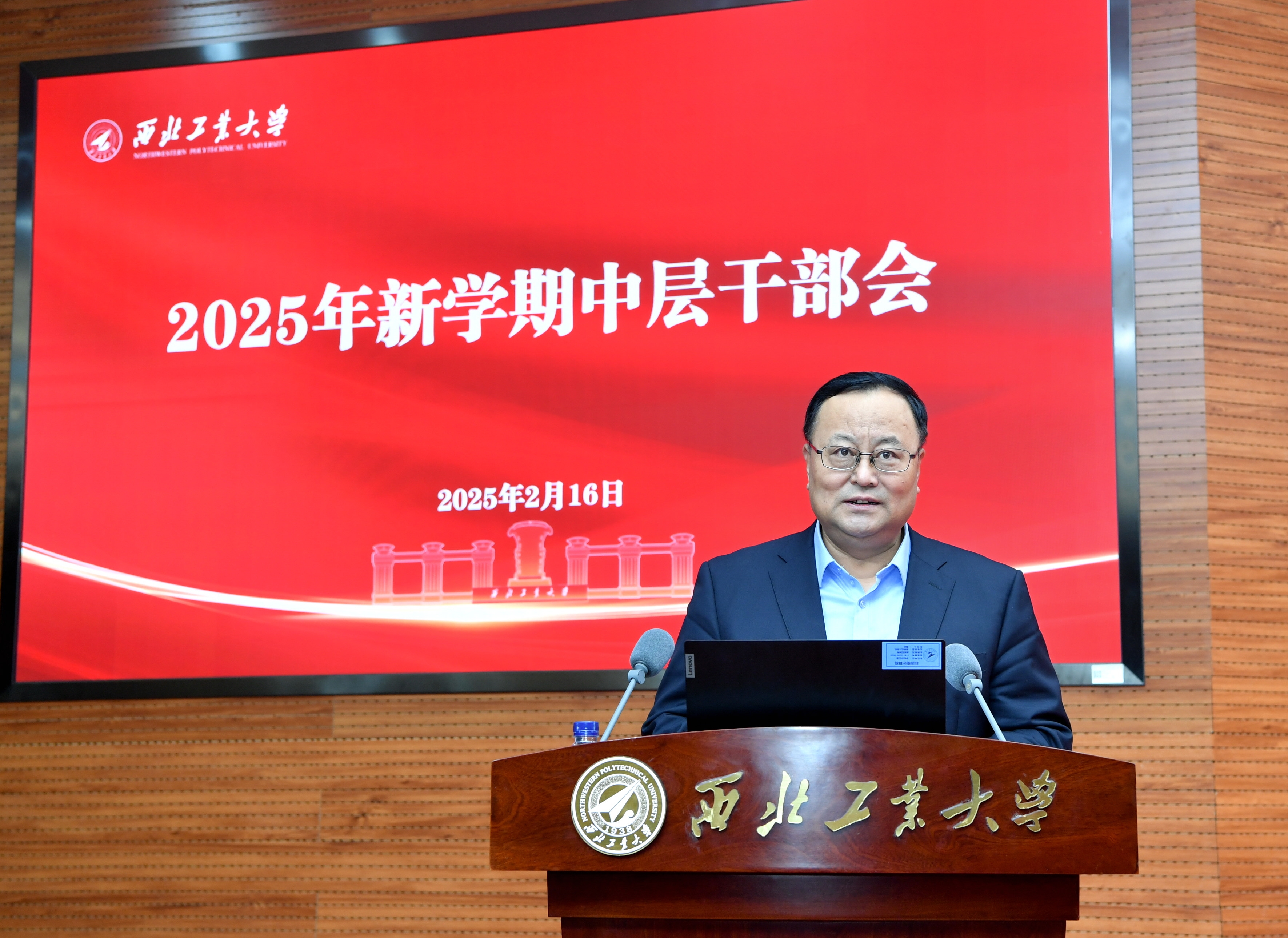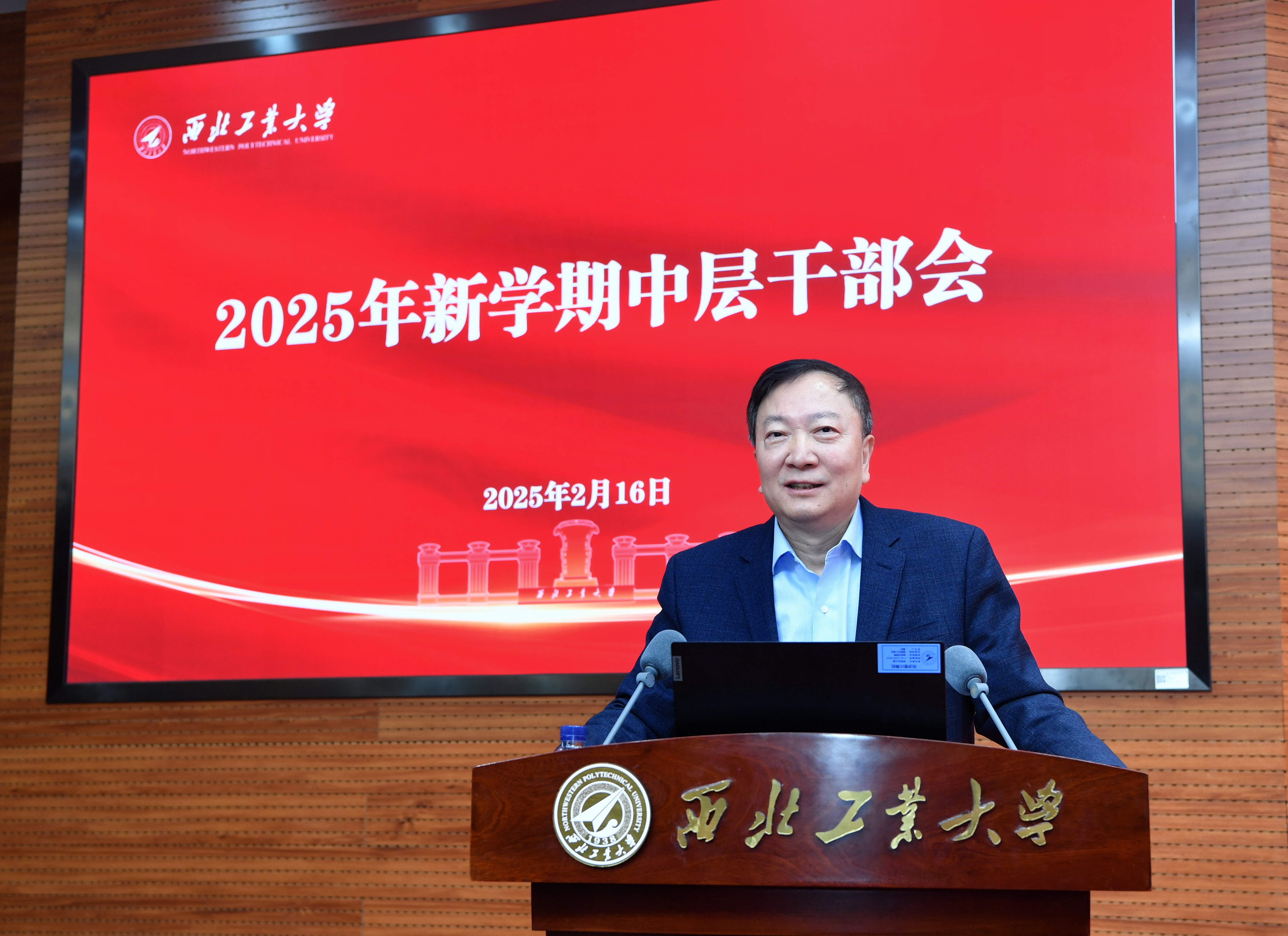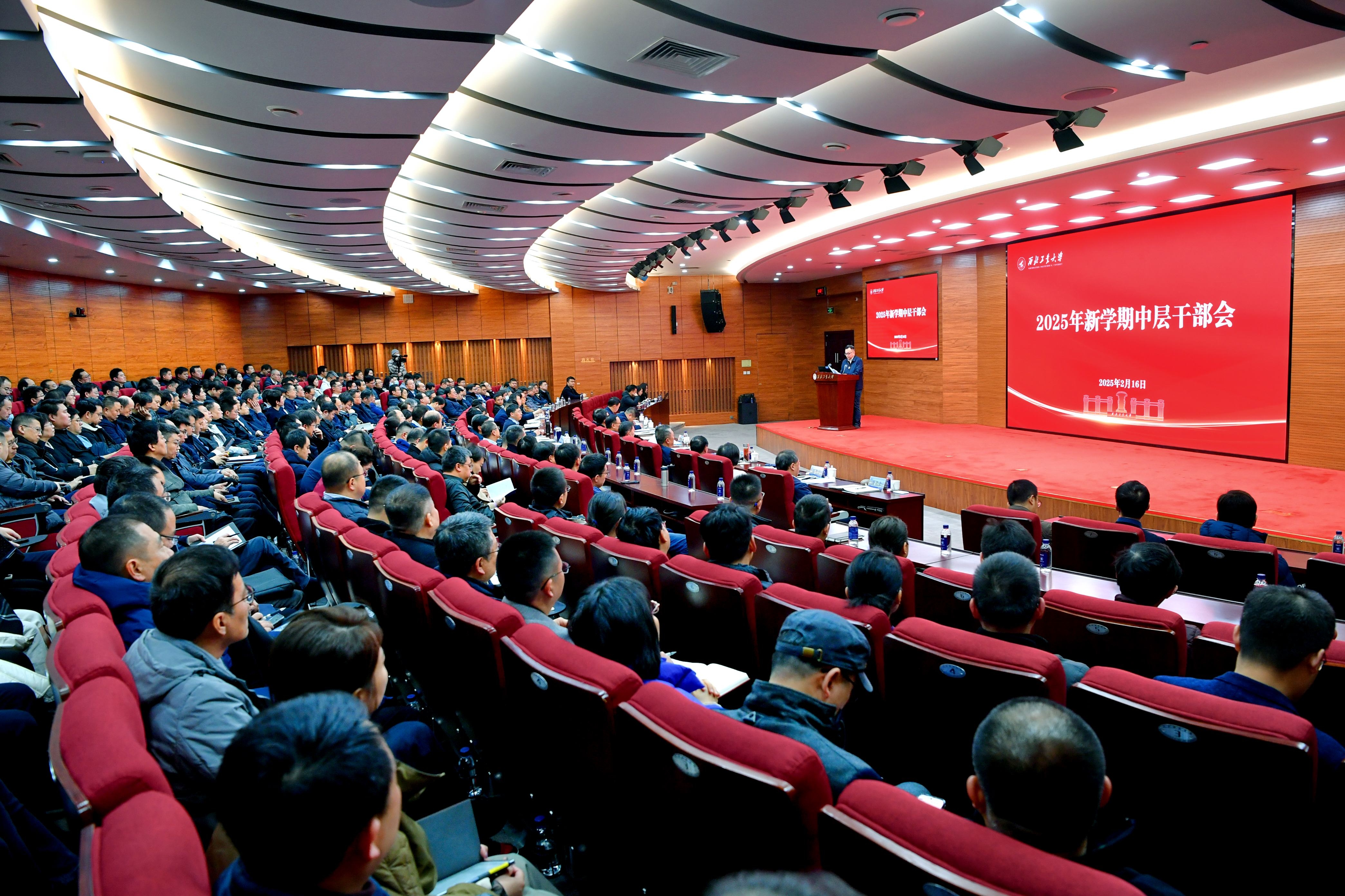 2月16日上午,学校召开2025年新学期全校中层干部会。校党委书记李言荣,校长宋保维出席会议并讲话。全体校领导,全校中层干部和教师代表参加会议。会议由党委副书记吕卫东主持。